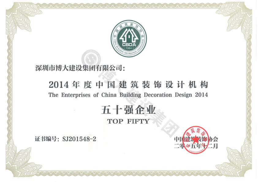 2014年度中國建筑裝飾設計機構50強企業