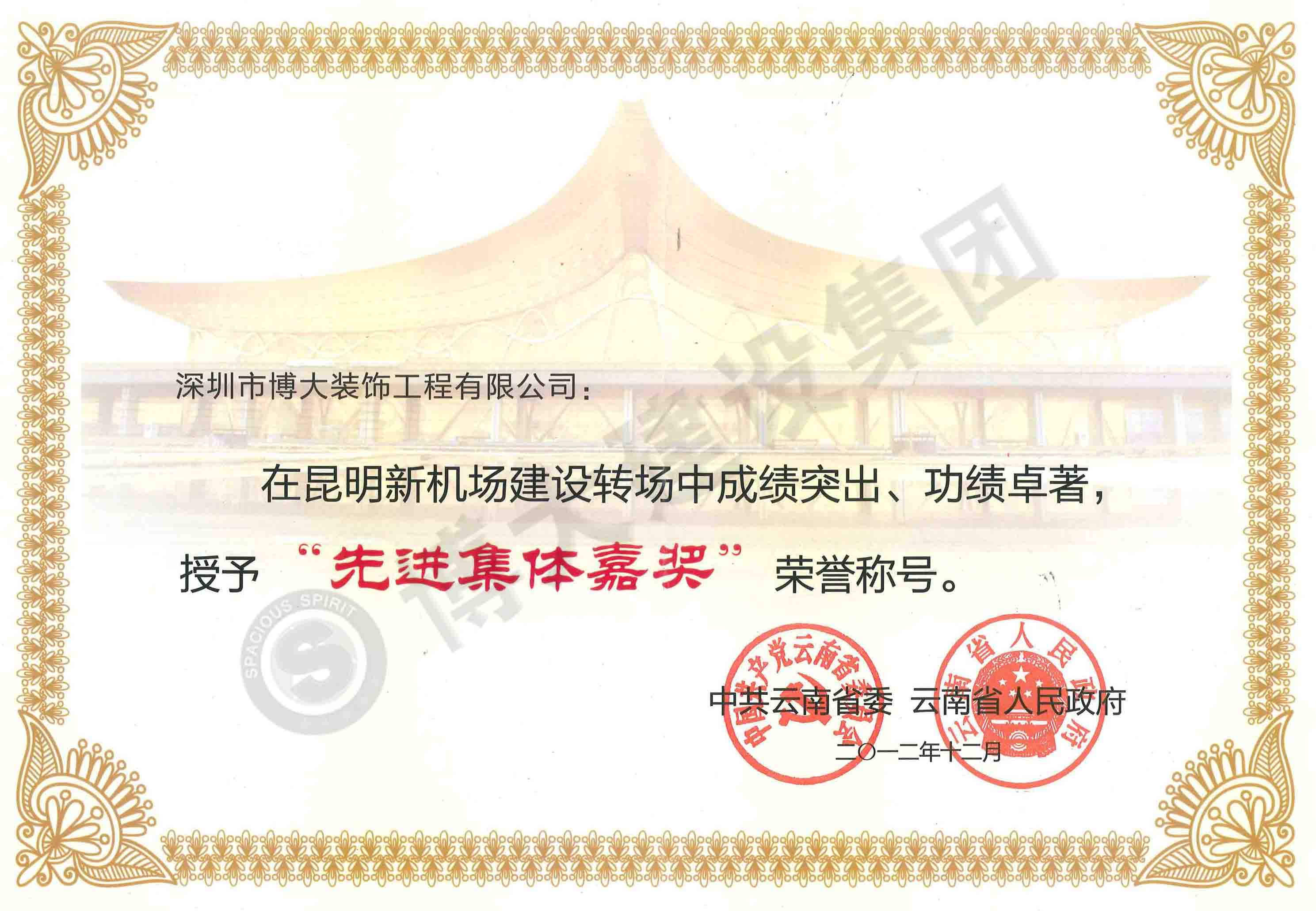 榮獲云南省委、省政府頒發的先進集體嘉獎