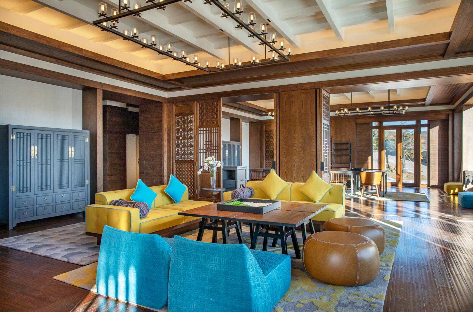 酒店設計由備受贊譽的泰國設計事務所P49 Deesign操刀,以尋找夢想中的“香巴拉”“月光城”為靈感素材,用藏式傳統風格進行現代簡約素凈演繹,為賓客呈現高原藏式鄰里文化。