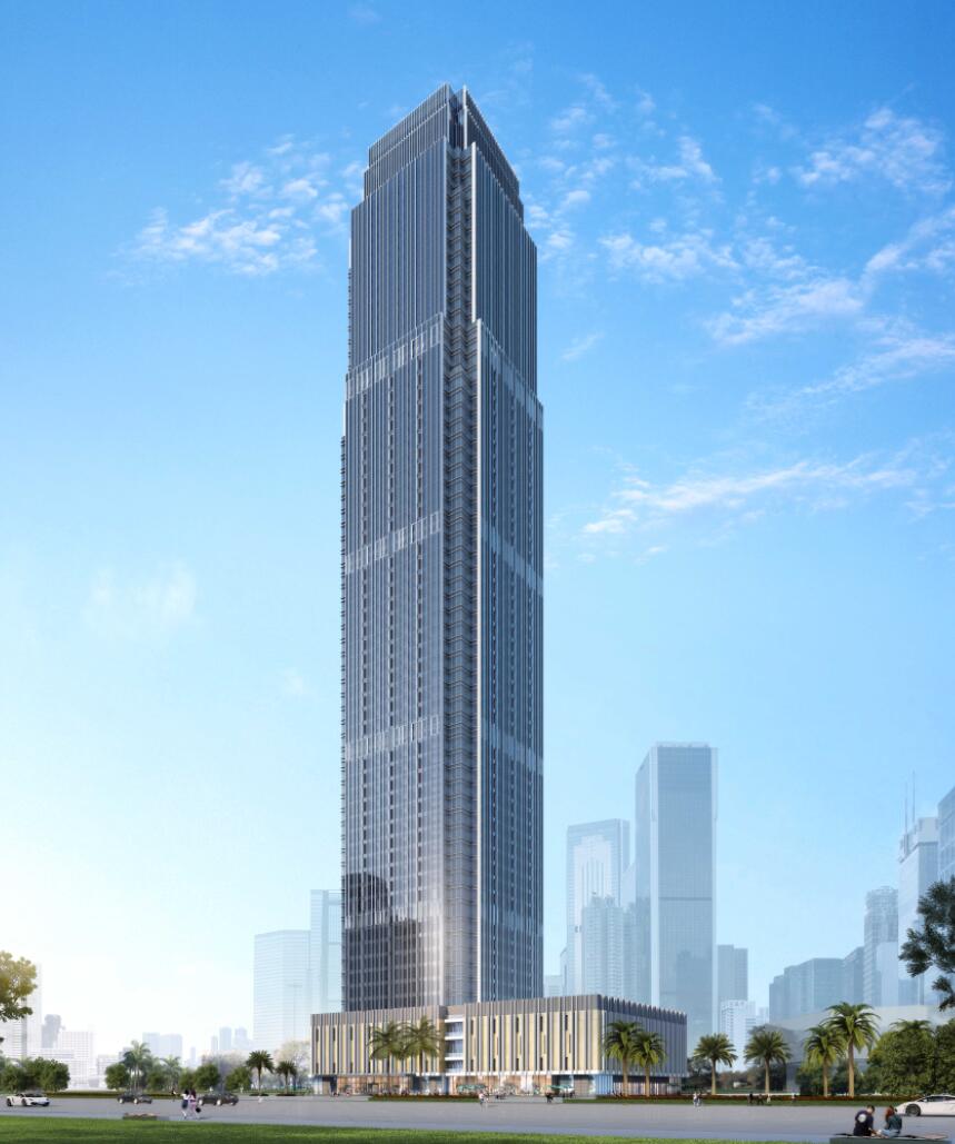 項(xiàng)目位于防城港市江山大道與金花茶大道交匯處,是一棟大型商業(yè)、辦公、酒店綜合體,總建筑面積超過17萬(wàn)㎡,建筑高度達(dá)到271米,地上70層,是防城港市最高樓。