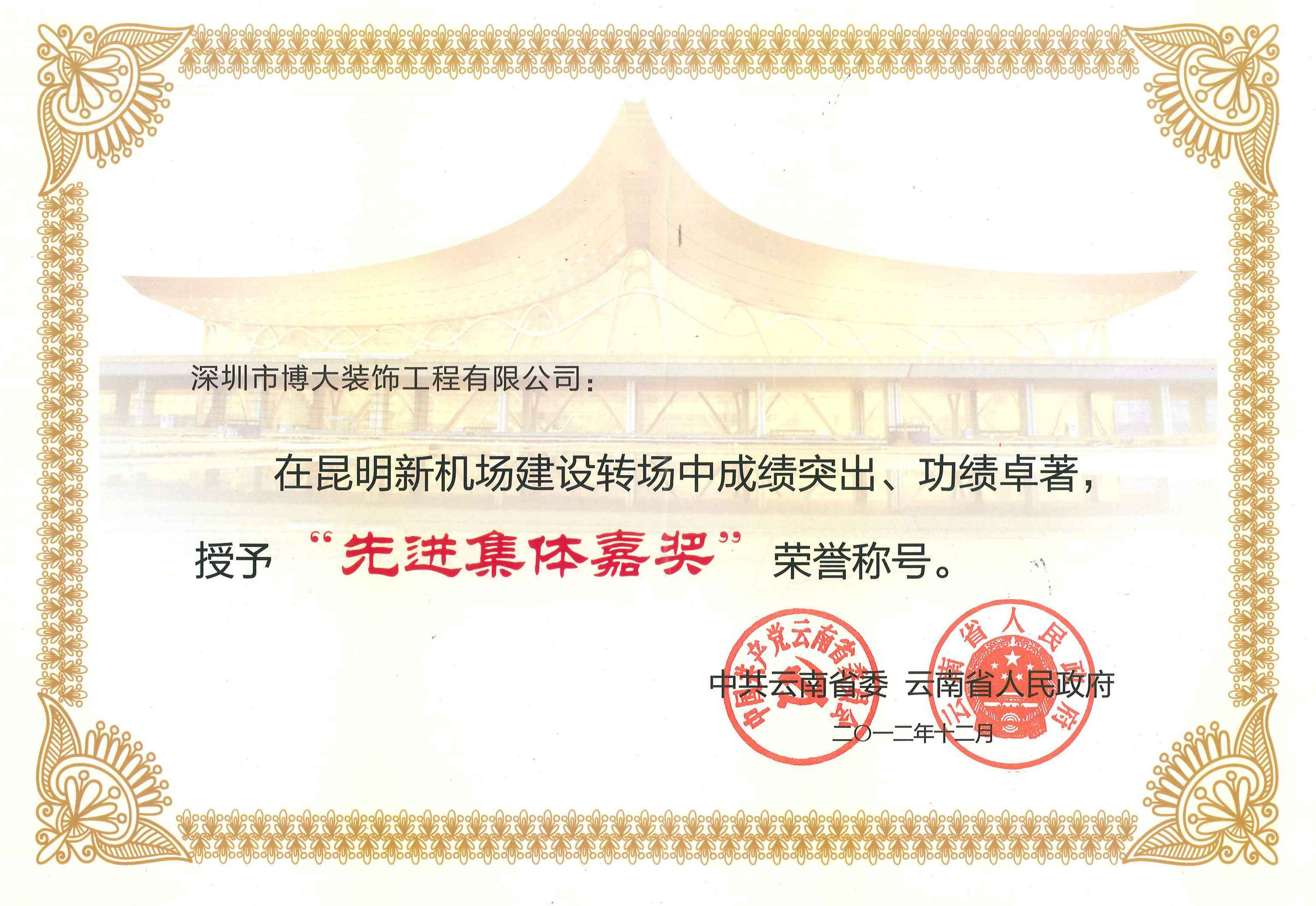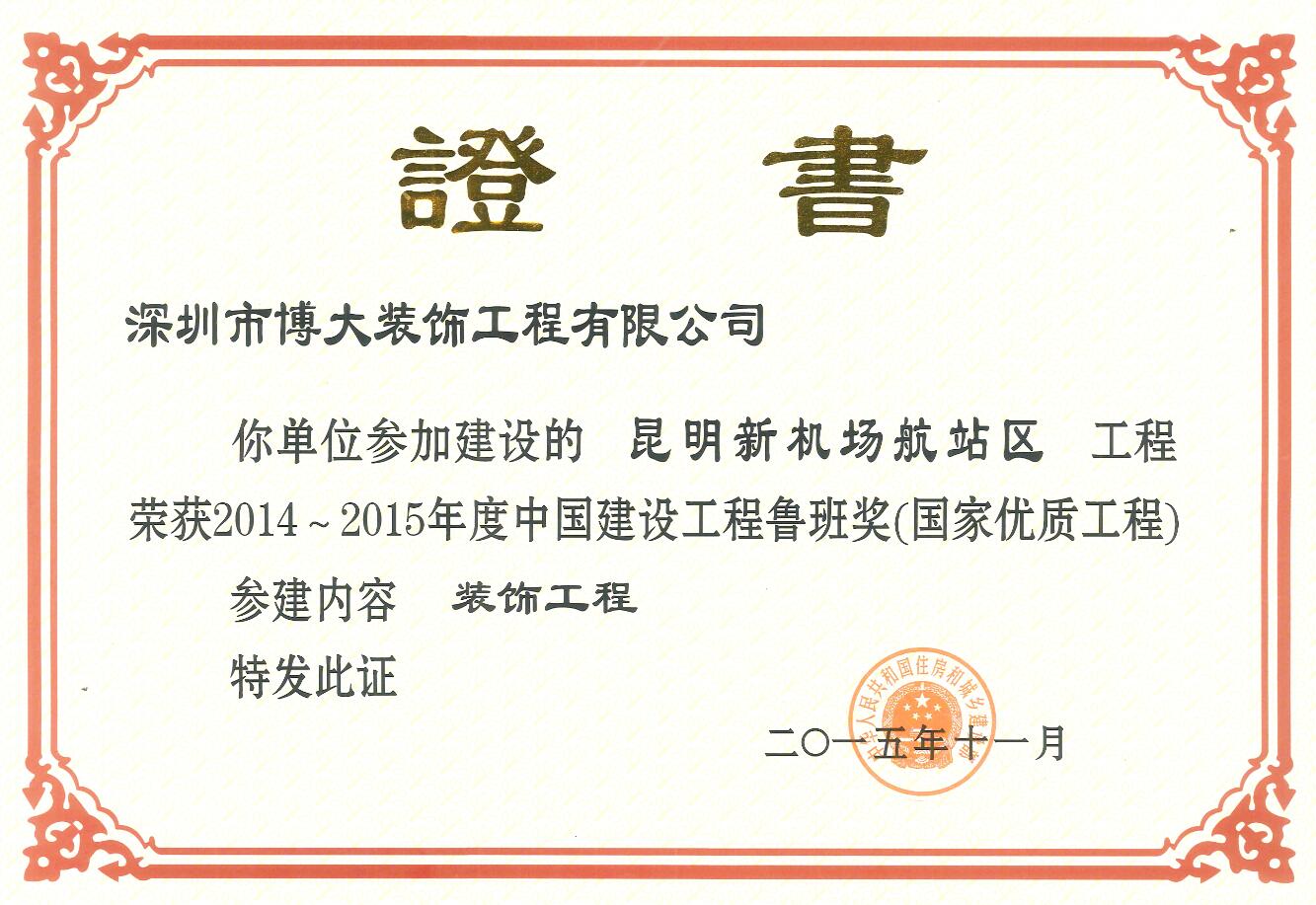 博大以精益求精的工匠精神成就大國品質,榮獲中國建筑裝飾最高獎——魯班獎、中國建筑裝飾工程獎,博大被云南省委、省政府授予“先進集體嘉獎”榮譽稱號。